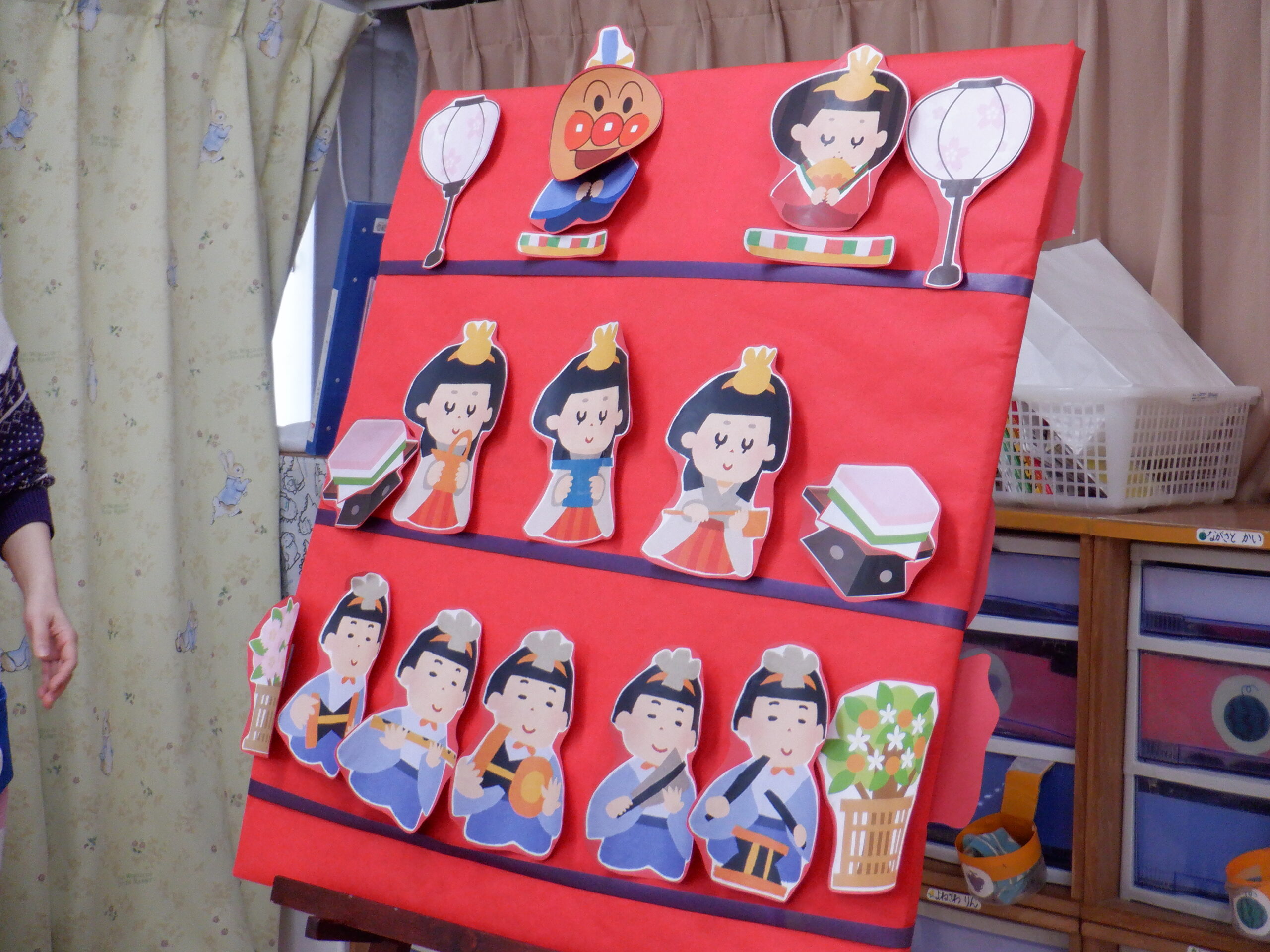 担当職員が各クラスをまわり、ひなまつりのパネルシアターを